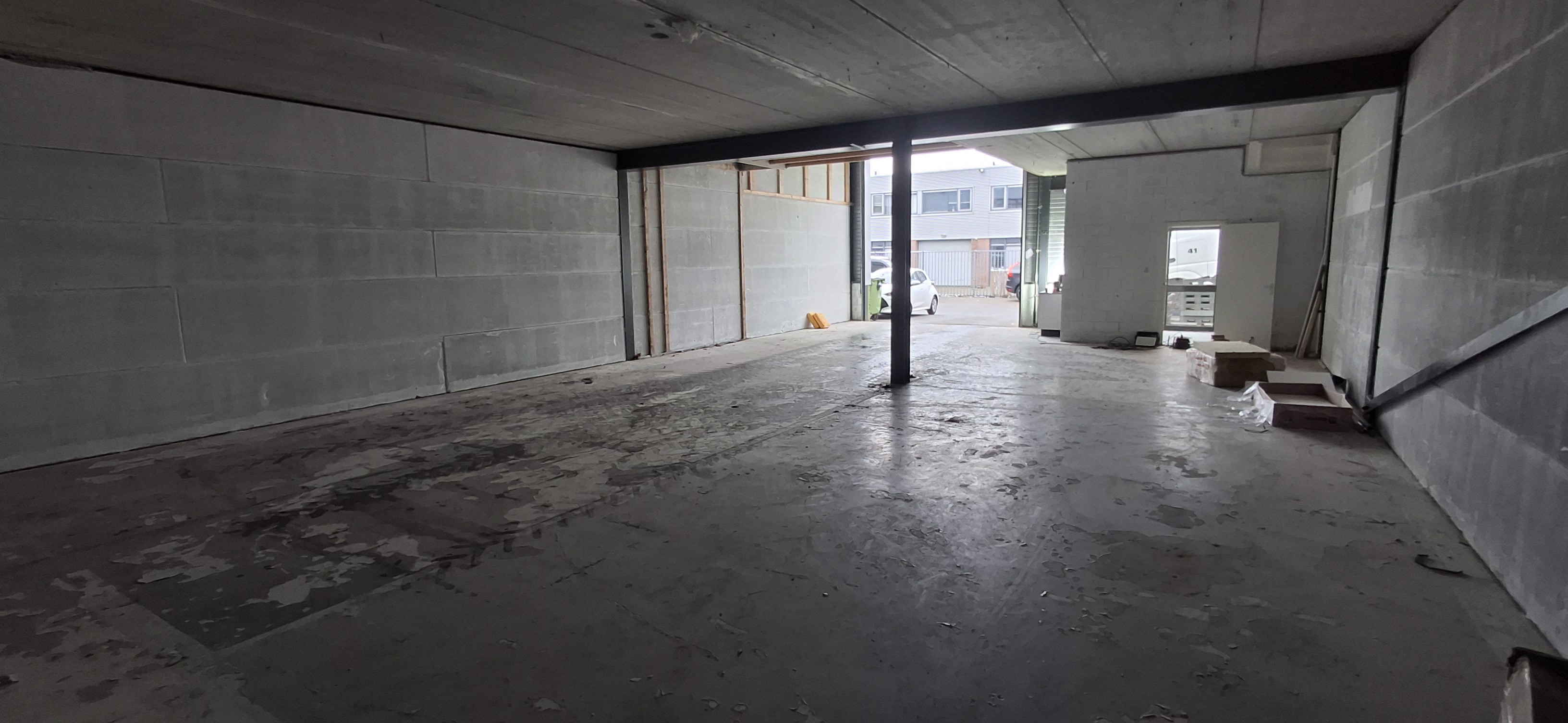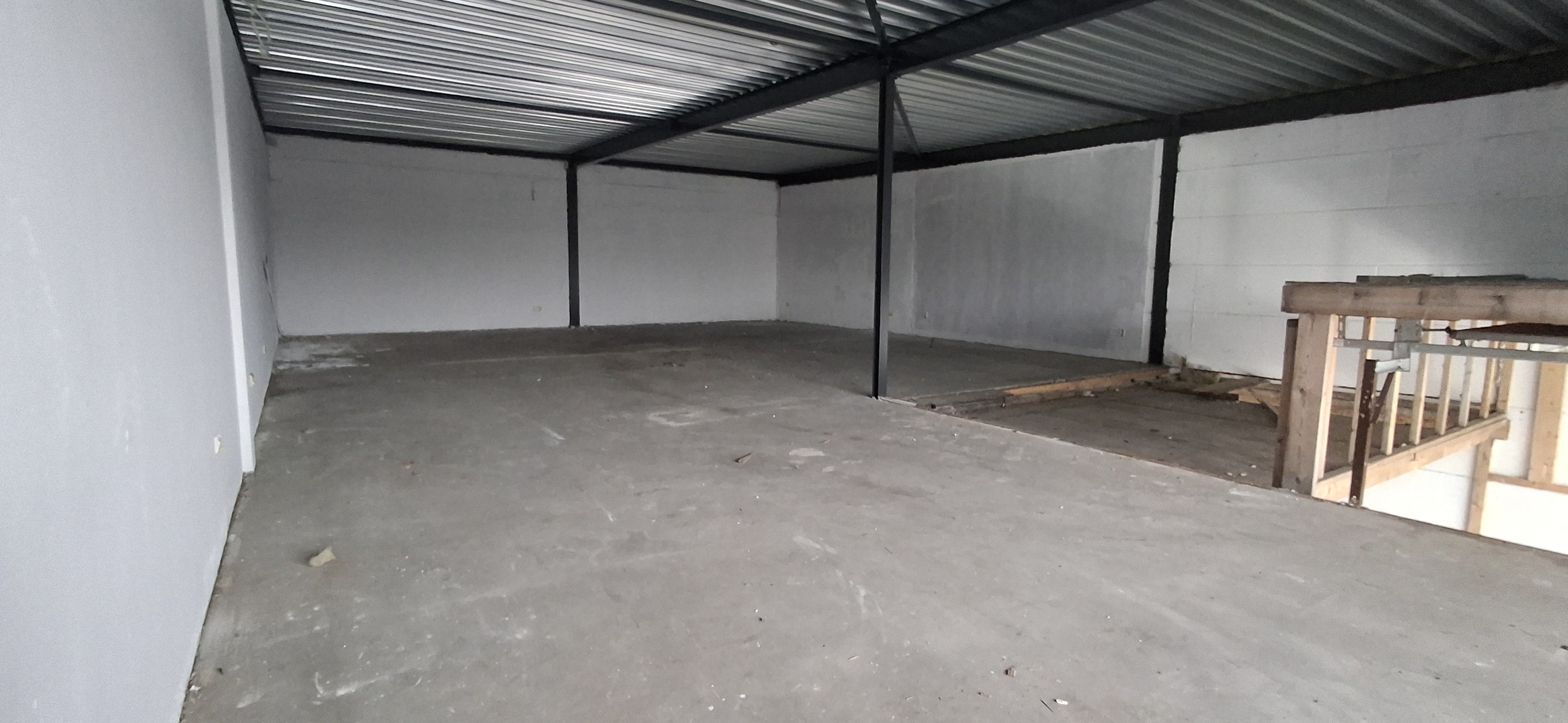 De ruimte beschikt over een loopdeur en een overhead deur aan de voorzijde.
