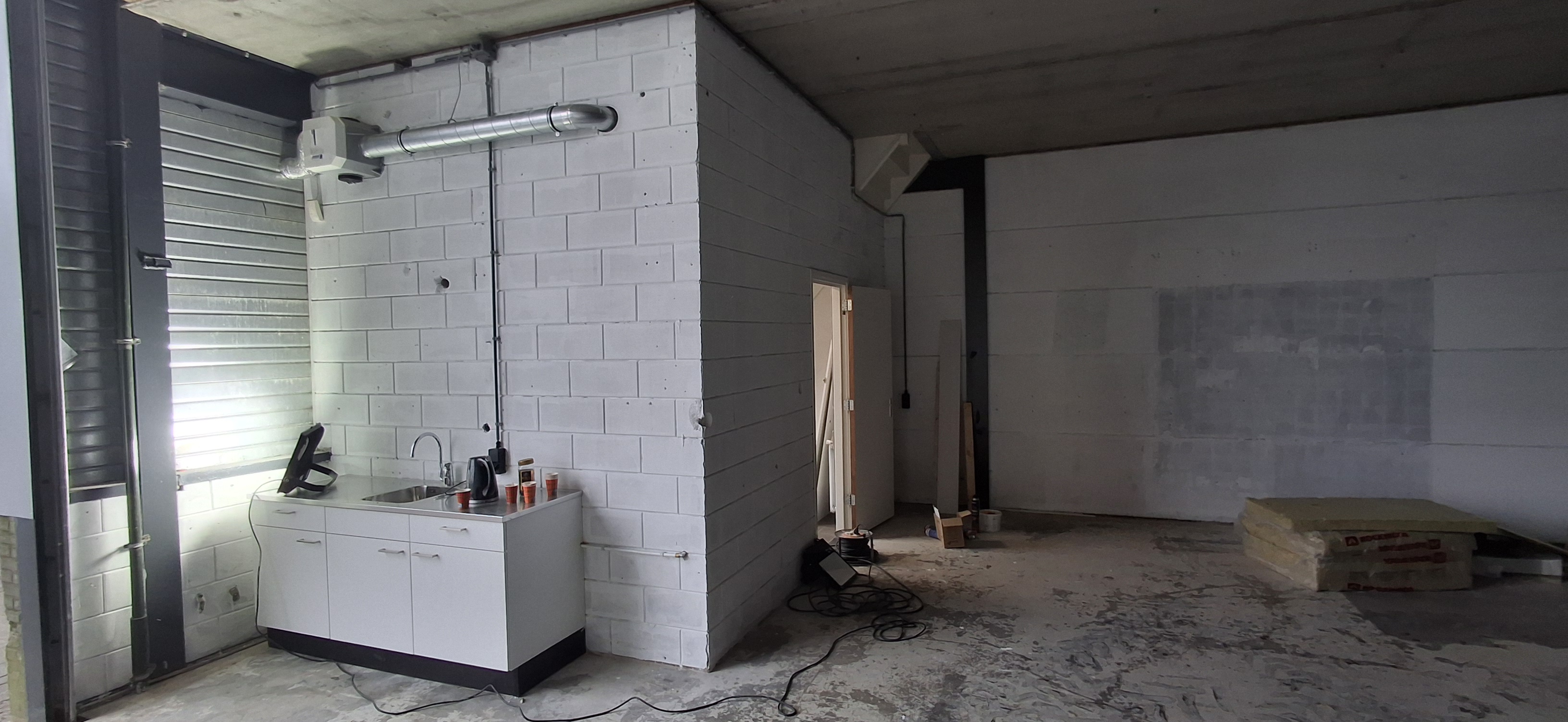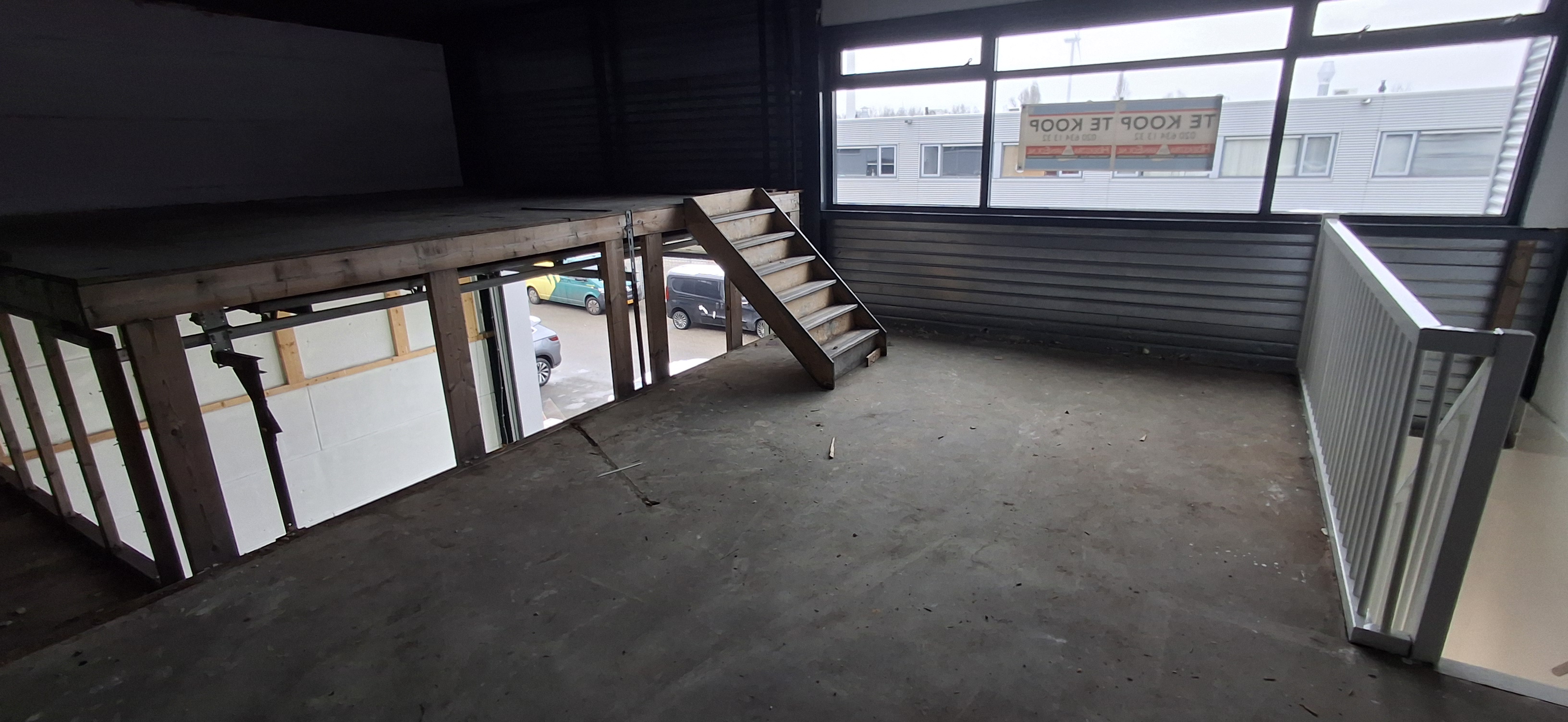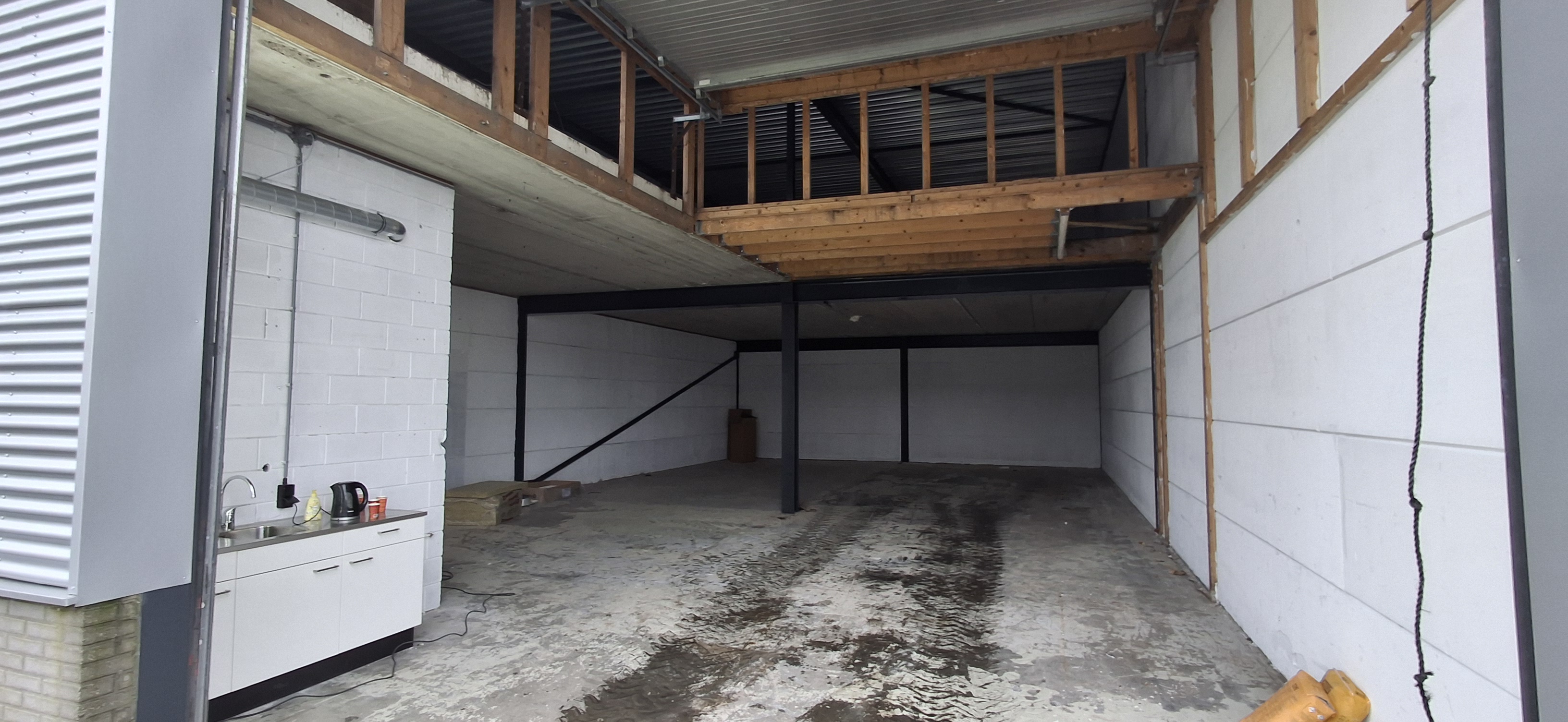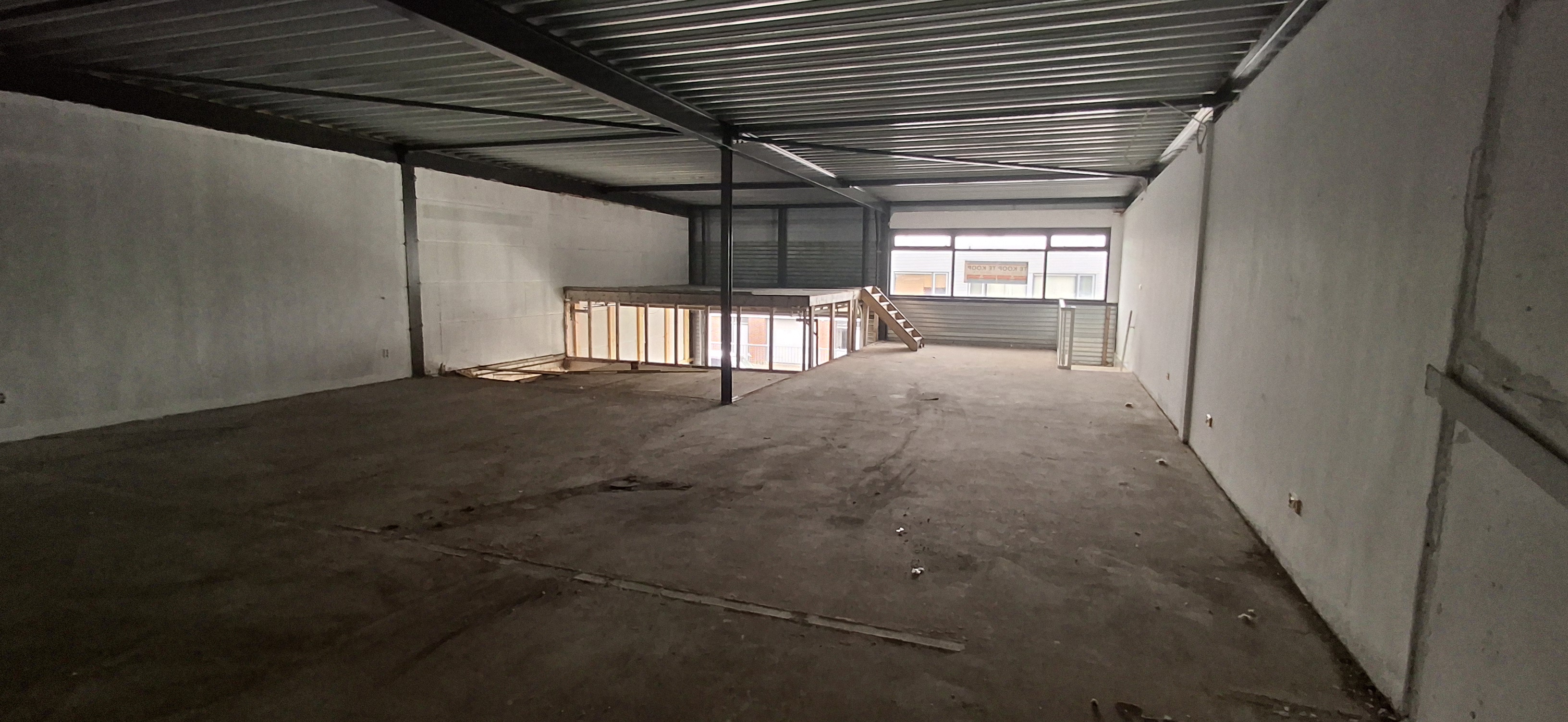 De eerste etage is nu ook een open ruimte maar aan de voorkant zijn een aantal ramen waardoor eenvoudige een kantoorruimte te realiseren is.