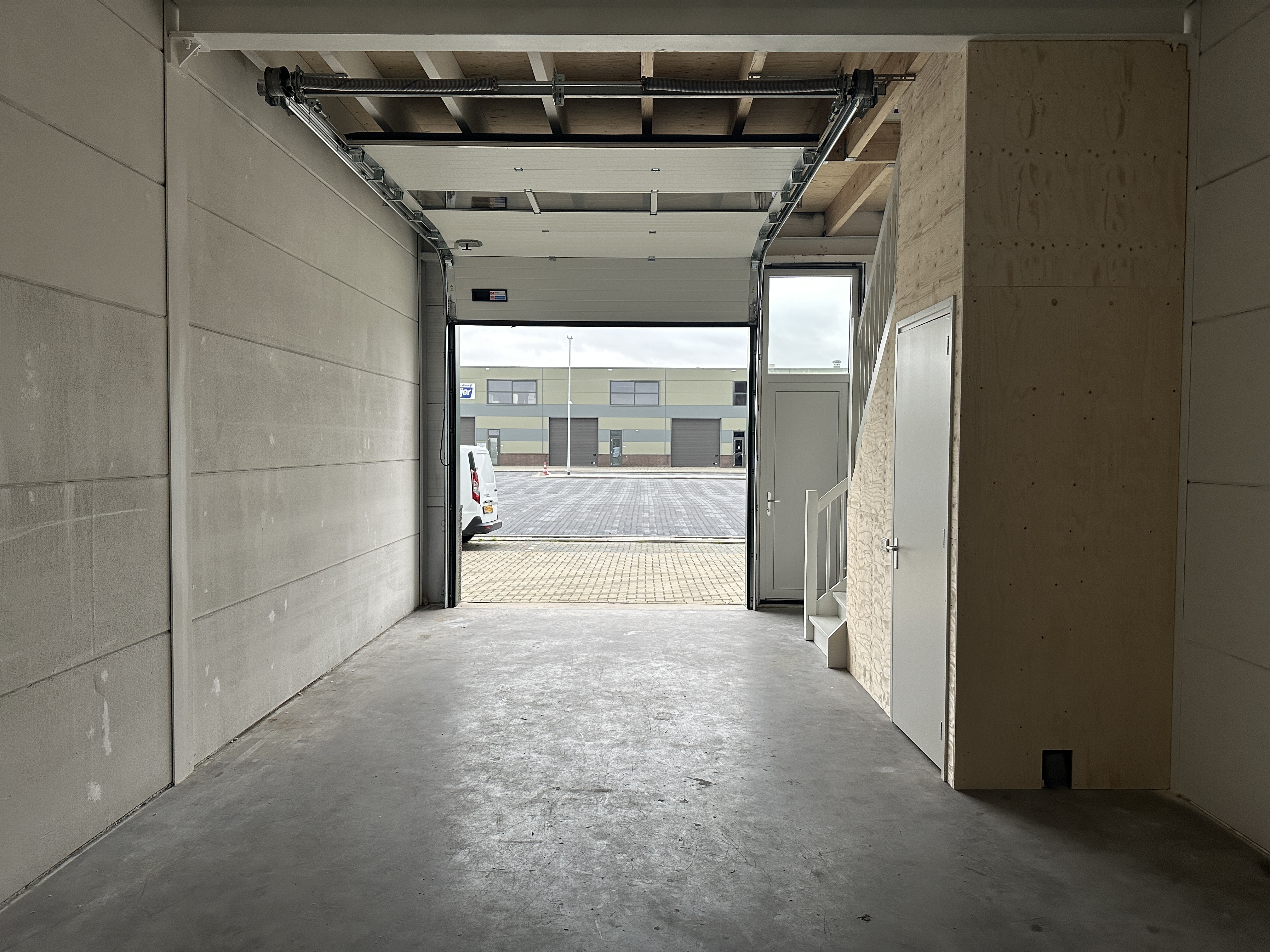 Het pand is gebouwd in 2020 en verkeert in nieuwstaat. De gevels zijn deels uitgevoerd in metselwerk en deels in moderne stalen gevelbeplating. De vloer heeft een draagvermogen van 1.000 kg/m² en beschikt over aansluitingen voor elektra en water. Het verharde buitenterrein biedt ruimte om te manoeuvreren én parkeren direct voor de deur.