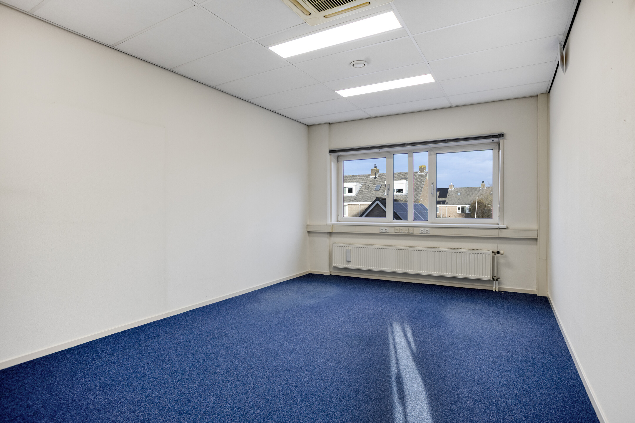| Voorzieningen | Te openen ramen, kabelgoten, systeemplafond, toilet, pantry, verwarming, en kamerindeling |