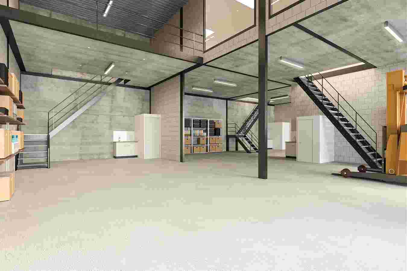 - Monolithisch afgewerkte betonvloer (vloerbelasting max. 2.000 kg/m²);