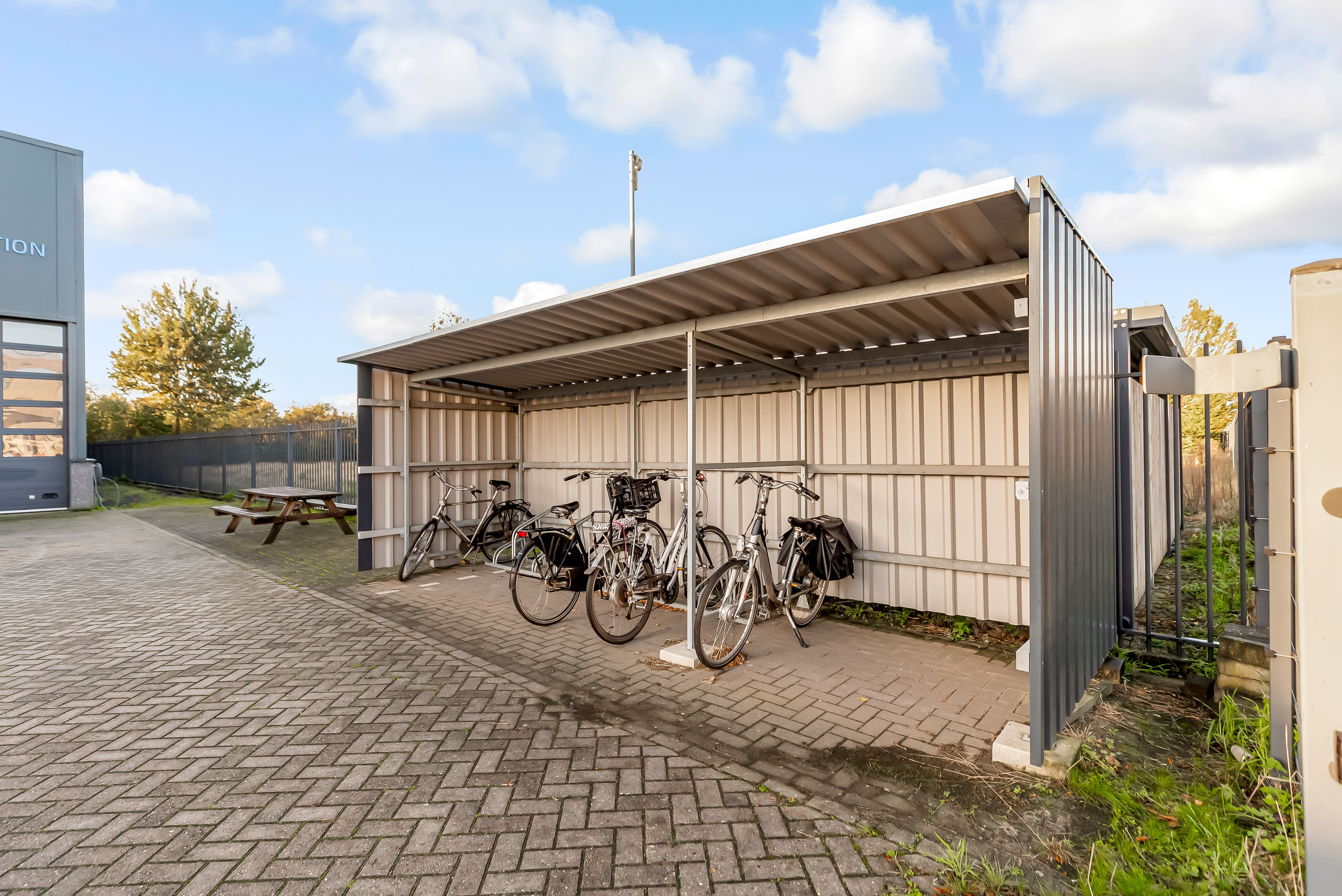 Het bedrijfsobject is voorzien van een verhard buitenterrein met verlichting en is volledig afsluitbaar met een elektronisch hekwerk met twee poorten (voor iedere overheaddeur). Het terrein beschikt over 17 parkeerplaatsen en een elektrisch oplaadpunt. Tevens is er een fietsenstalling aanwezig.