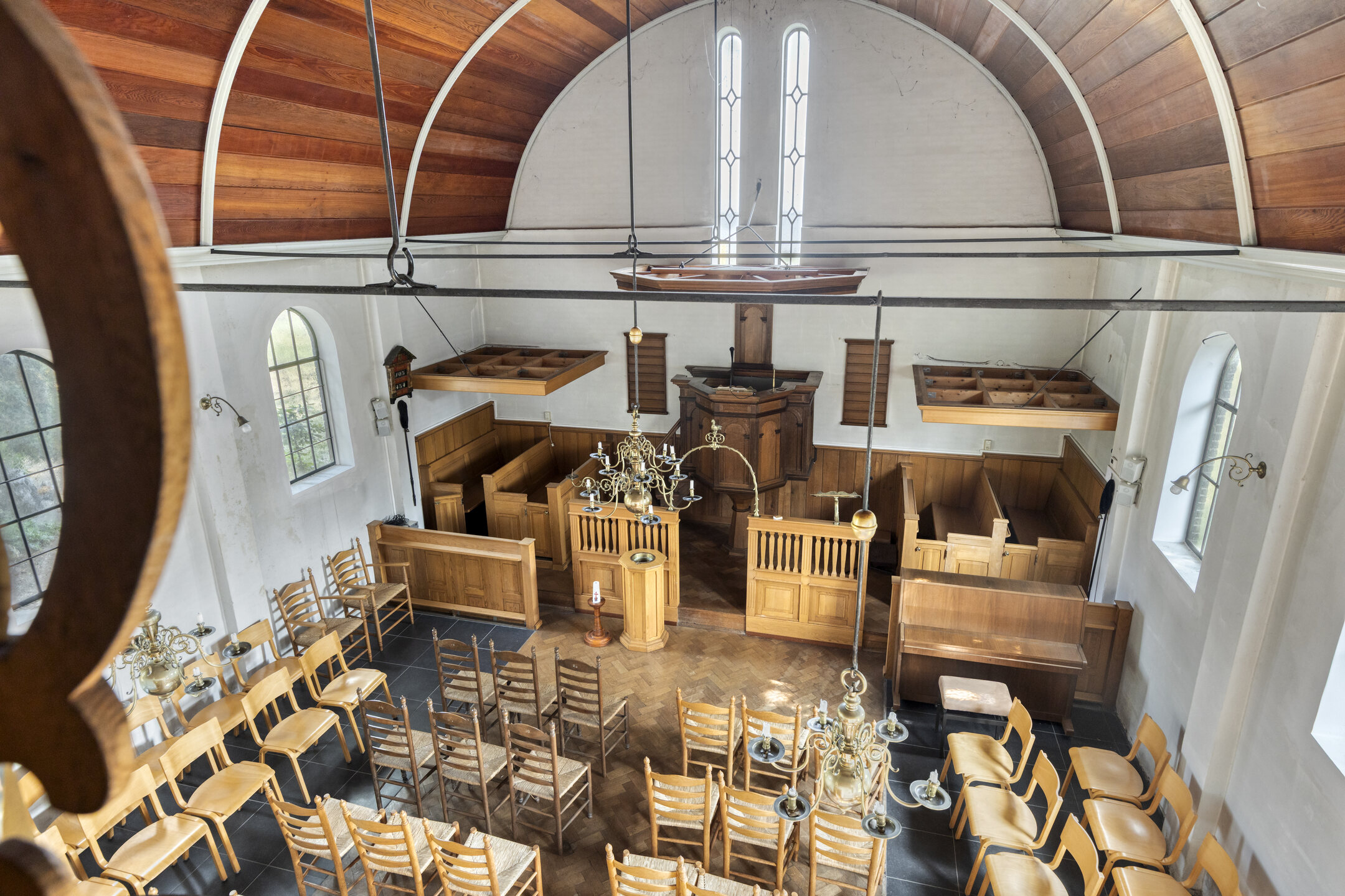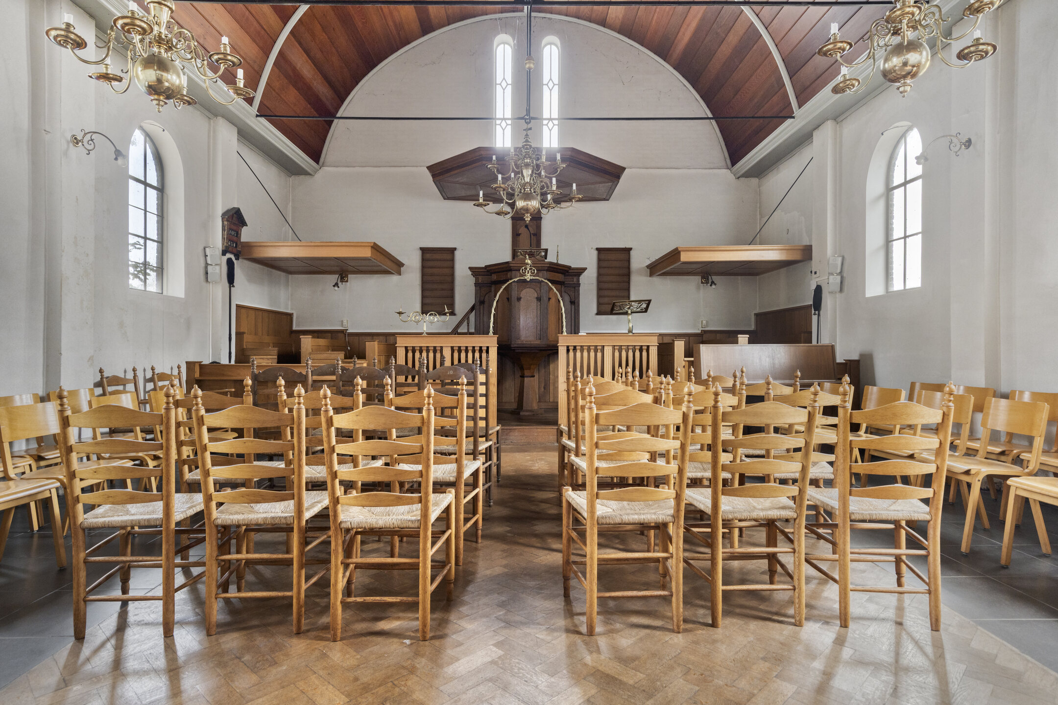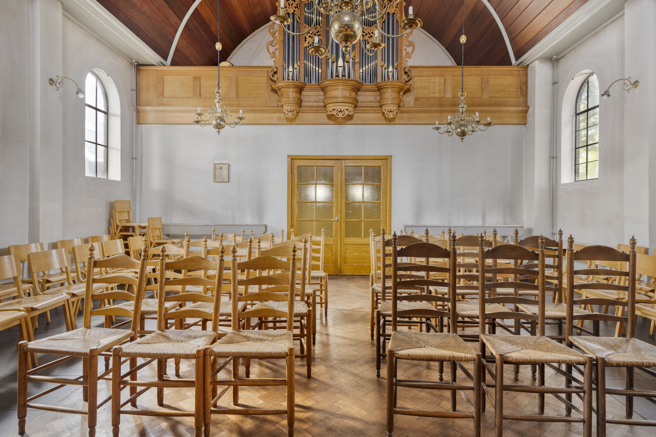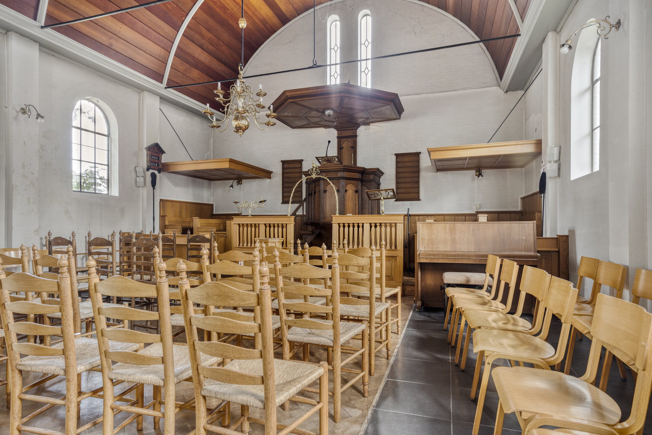 Gebouwd in interbellumstijl,houten palen fundering en betonvloer, met waalformaat gevelstenen, een karakteristiek zadeldak met rode verbeterde Hollandse pannen, originele boog- en ronde ijzeren vensters en een lichte, hoge kerkzaal met orgel en vide. De indeling omvat o.a. een entree met dubbele deuren en overkapping, zijkamer, gang/bergruimte, toilet, ruime kerkzaal en een verdieping met vide en orgel.