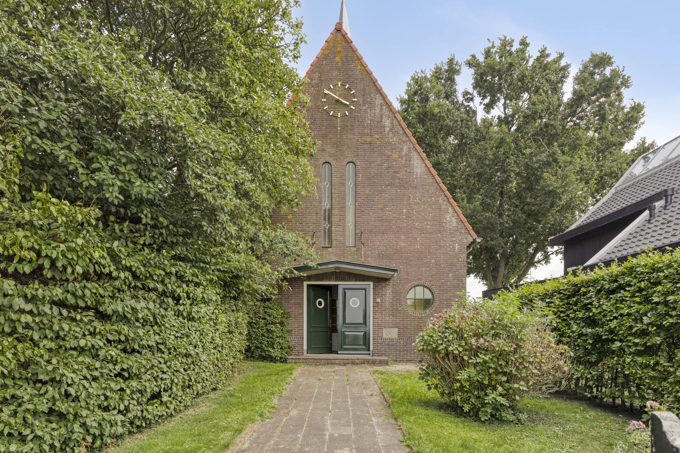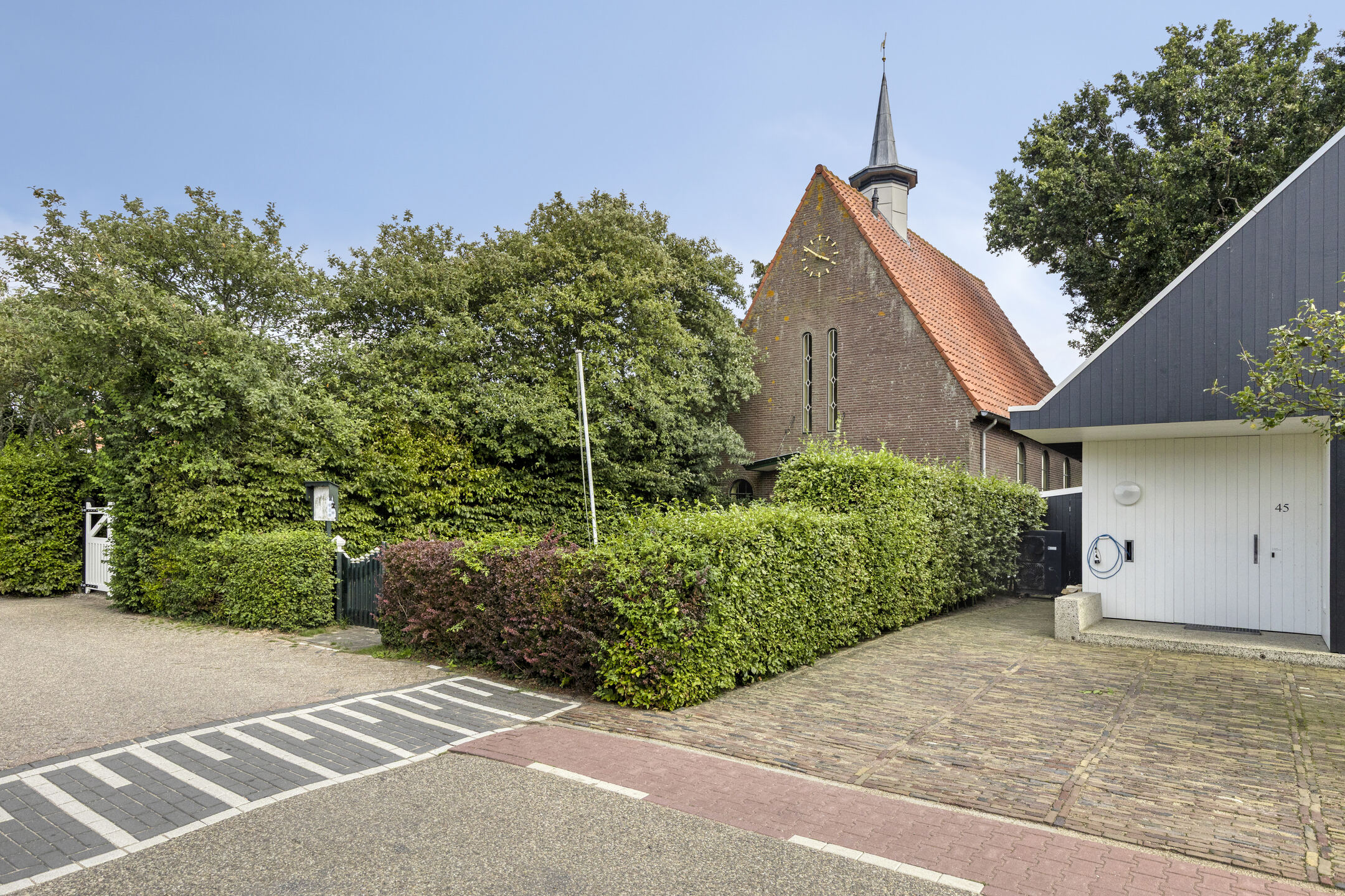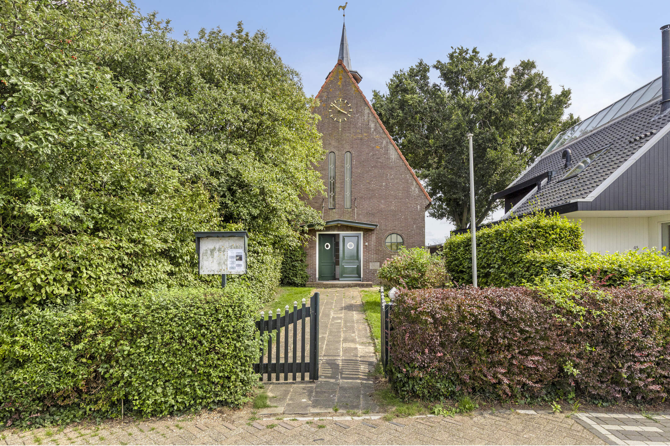 Het kerkgebouw staat op een perceel van ca. 260 m², met daarnaast een tegenoverliggend erf/tuin van ca. 240 m². De ligging is werkelijk uniek: midden in het dorp, met vrij uitzicht en op een steenworp van het water.