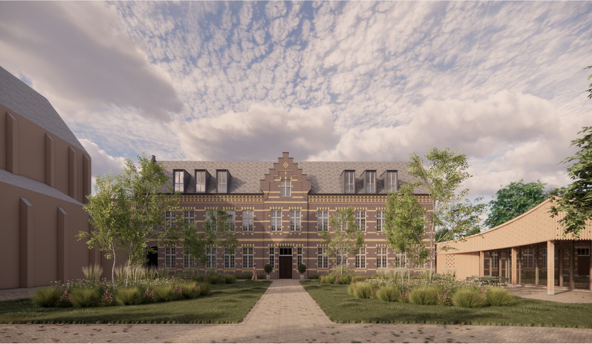 Het Neerhuis is het absolute visitekaartje van de abdij; het eerste wat bezoekers zien als ze het terrein op rijden.