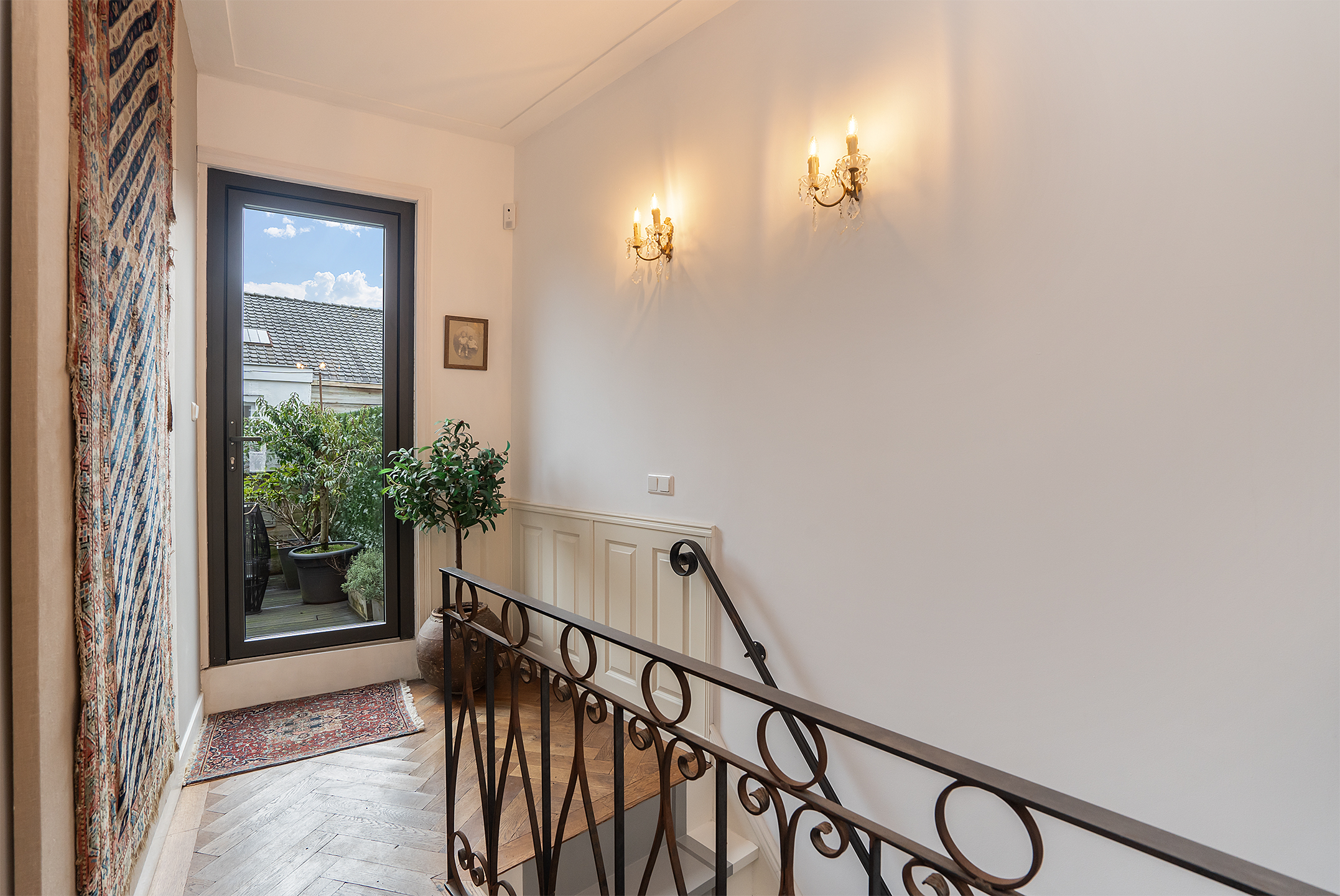 De woning heeft een woonoppervlak van 163 m2. Er is een royale keuken en er zijn vier slaapkamers. Achter het zonnige terras is er tevens een aparte woonruimte, voorzien van eigen badkamer. Deze ruimte kan bijvoorbeeld worden gebruikt als extra kantoorruimte, als aparte studio, als atelier of voor mantelzorg.